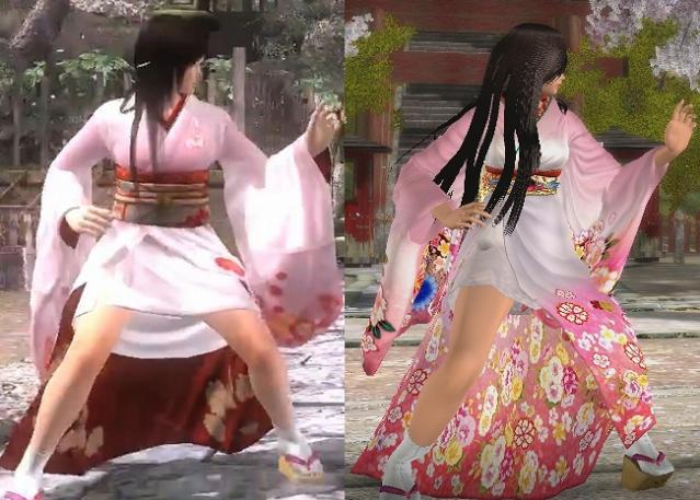 グラフィックは向上して作りも精巧だが、フェチズム的なものが減少しているといった点で、全体的に一進一退といった感じだが、(現段階では)3D格ゲーにおいて鉄拳タッグ2をも超える最高峰のグラフィックで着物コスがリメイクされ、使用出来るってんだからもう、それだけで大満足ですがね♪