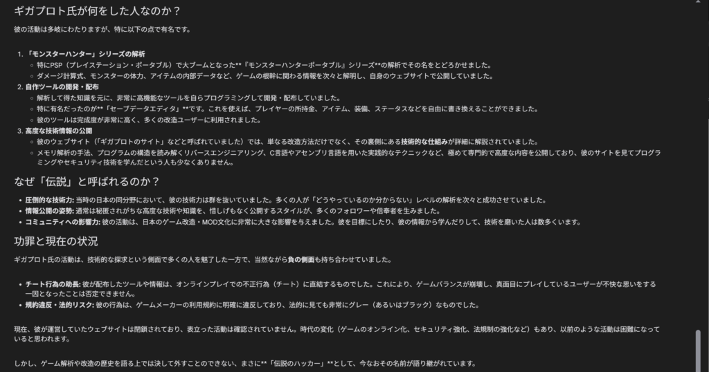 しかし、ゲーム解析や改造の歴史を語るうえでは決して外すことのできない、まさに「伝説的ハッカー」として、今もなおその名前が語り継がれています。